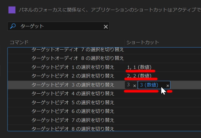 ターゲットビデオのショートカットを数字に設定しましたが、そのショートカットを入力するとタイムコードが入力されてしまいます。