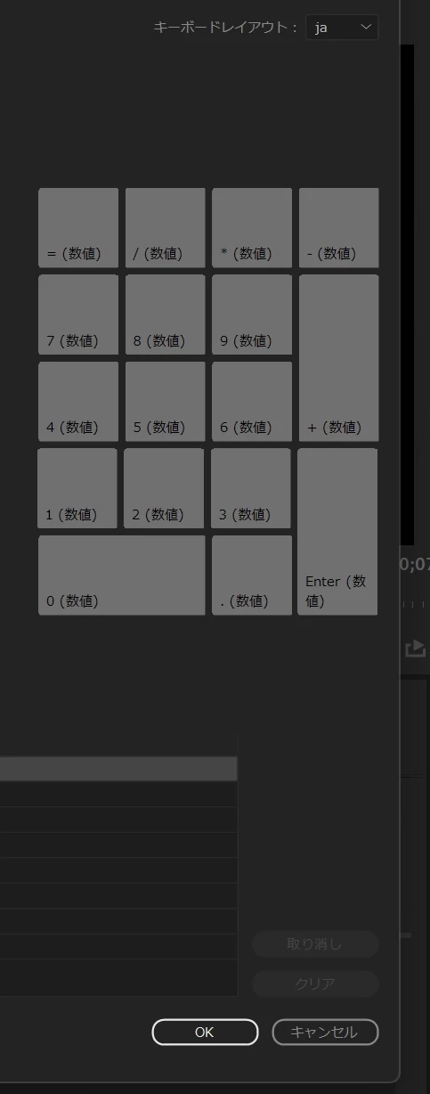 私はWindows 10 22H2, Premiere Pro v24.1にて検証しているのですが、テンキー側も左側のキー同様に設定することができております。