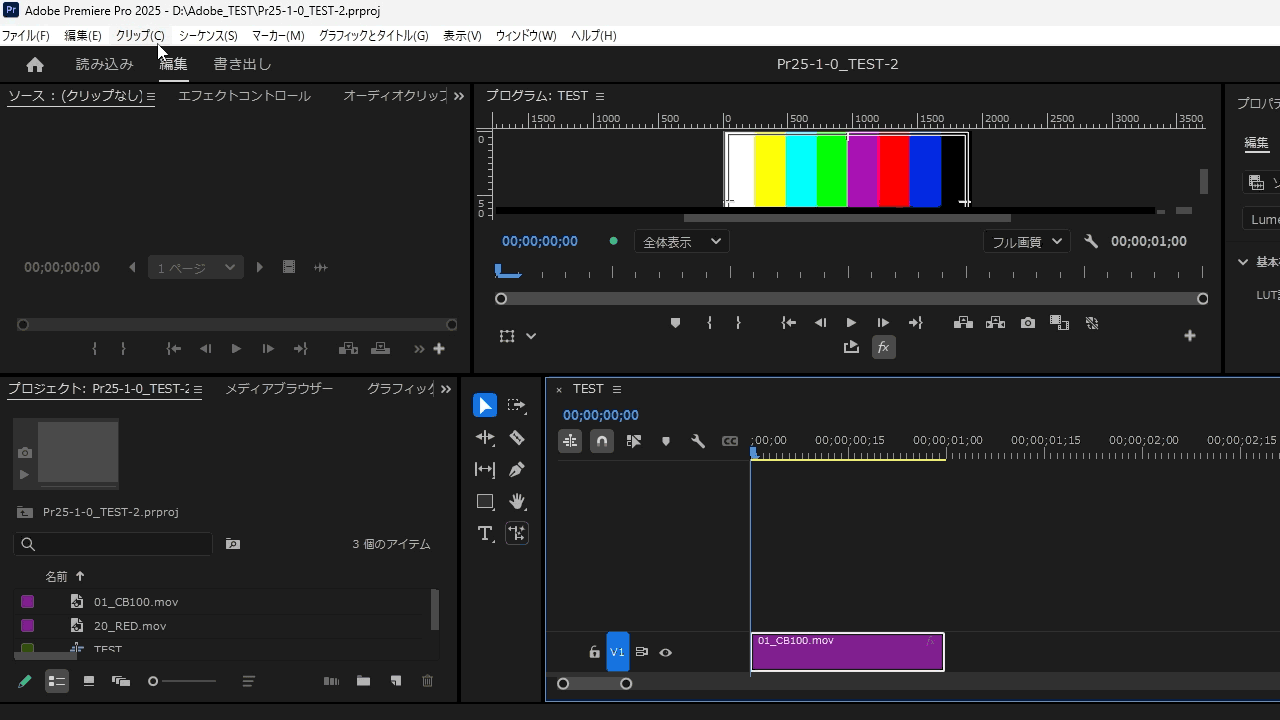 いま、Windows 11, Premiere Pro v. 25.2.3の環境で試してみた限りでは正常に動作するようなので、一度下記の手順で動作するかお試しいただくといかがでしょうか。