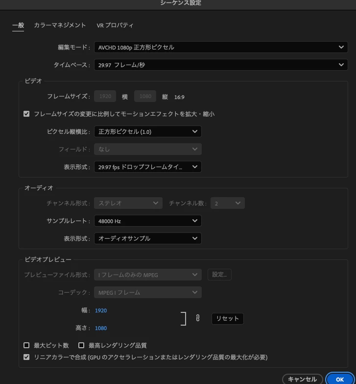 ①新しくシーケンスを作成し、そちらのシーケンスへペーストしてみます。
