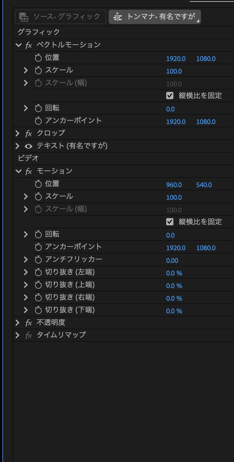 クリップを別シーケンスにコピペしたら大きさと位置が変わってしまいます。