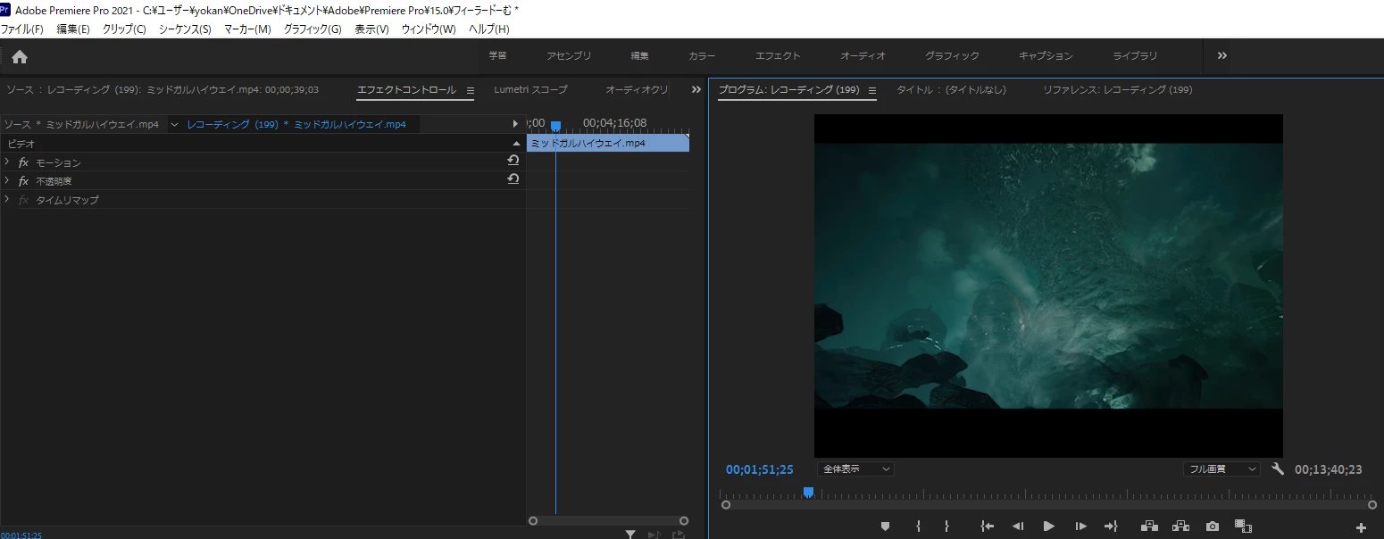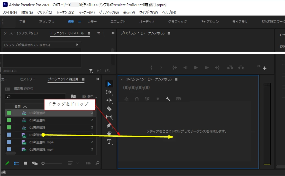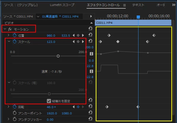 クリップの縦横比とエフェクトコントロールの表示させ方