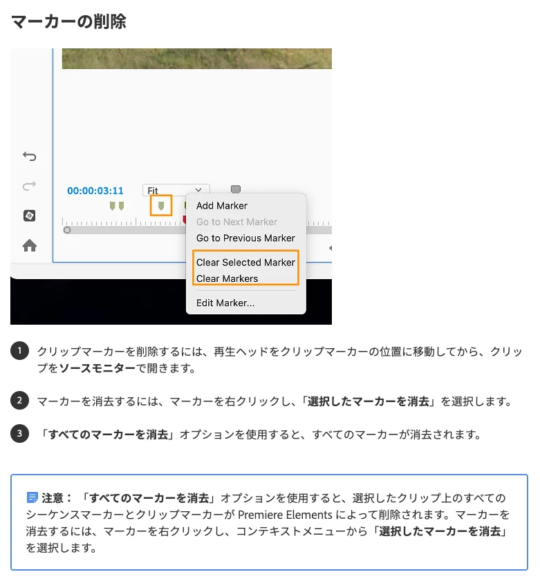 これは「1つのクリップに複数のマーカー」がついていた場合の方法でしょうか・・?