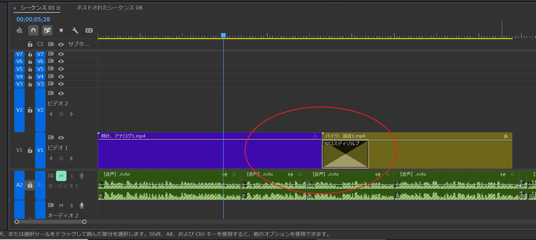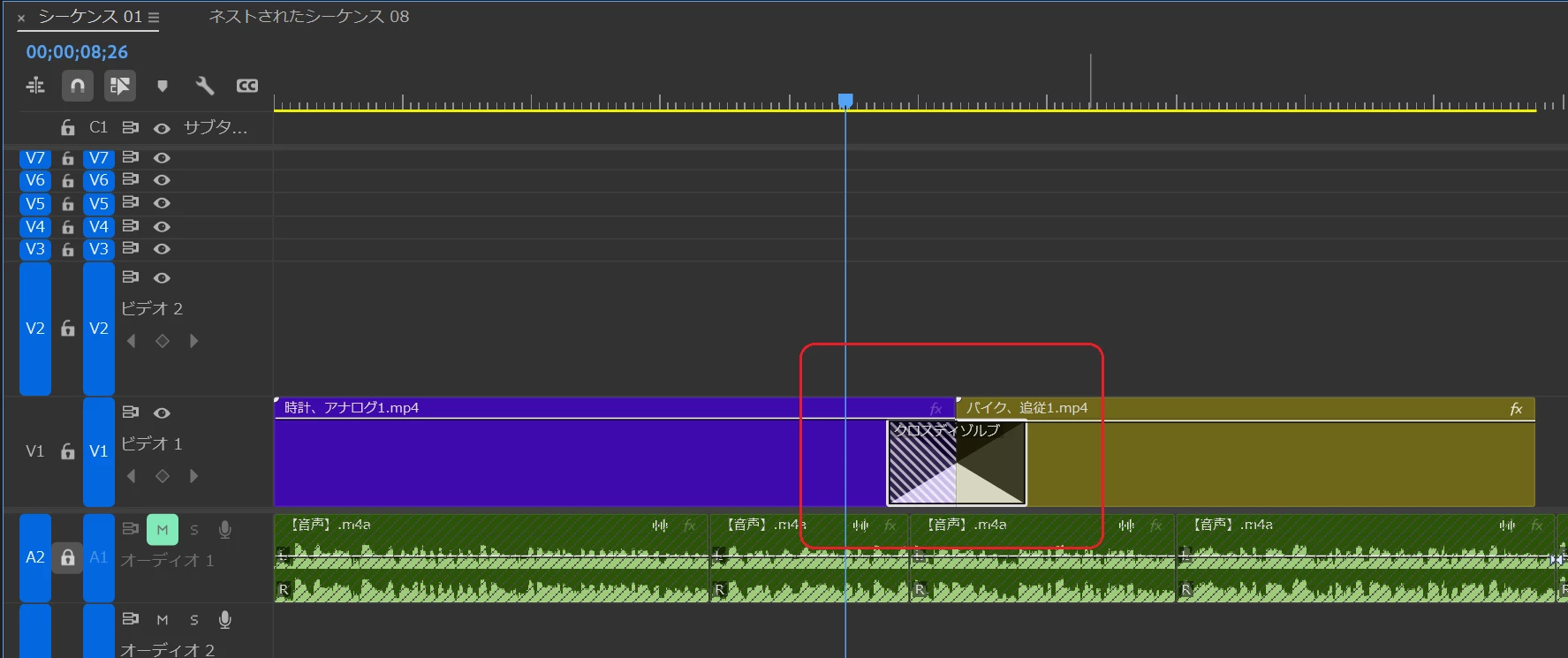動画編集上、全クリップにクロスディゾルブをかけるわけではなく、たとえ全クリップに