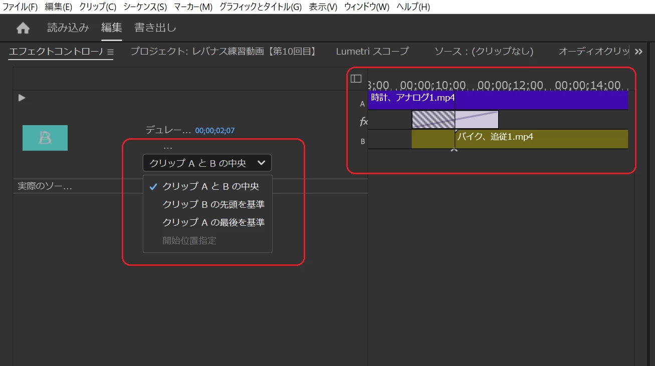 →「クリップAとBの中央」を選択