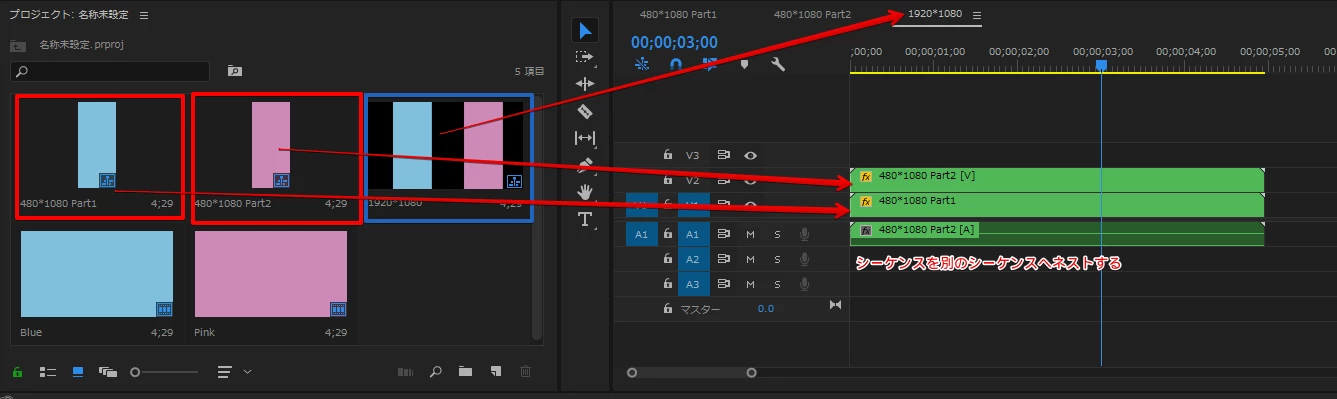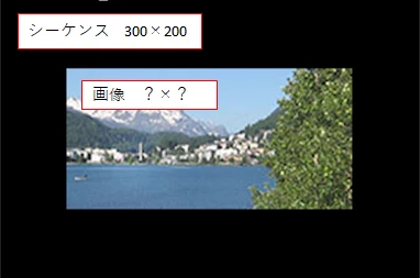 ①フレームサイズ300×200のシーケンスに、フレームサイズ不明の画像を配置します。