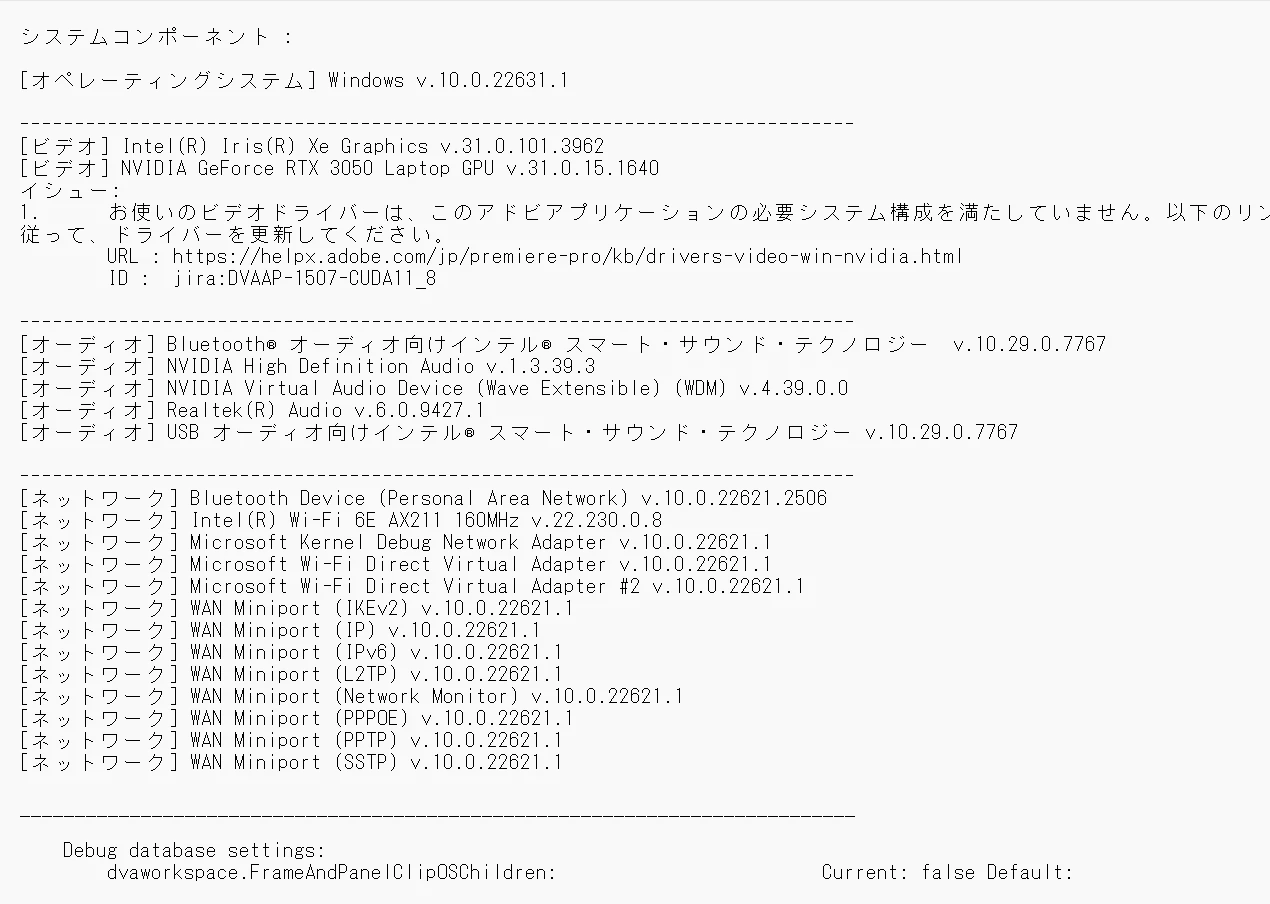 今回、Premiere Pro 23.x→24.xにアップデートされたので、今迄のGPUのドライバは古いと判断されたのだと思います。