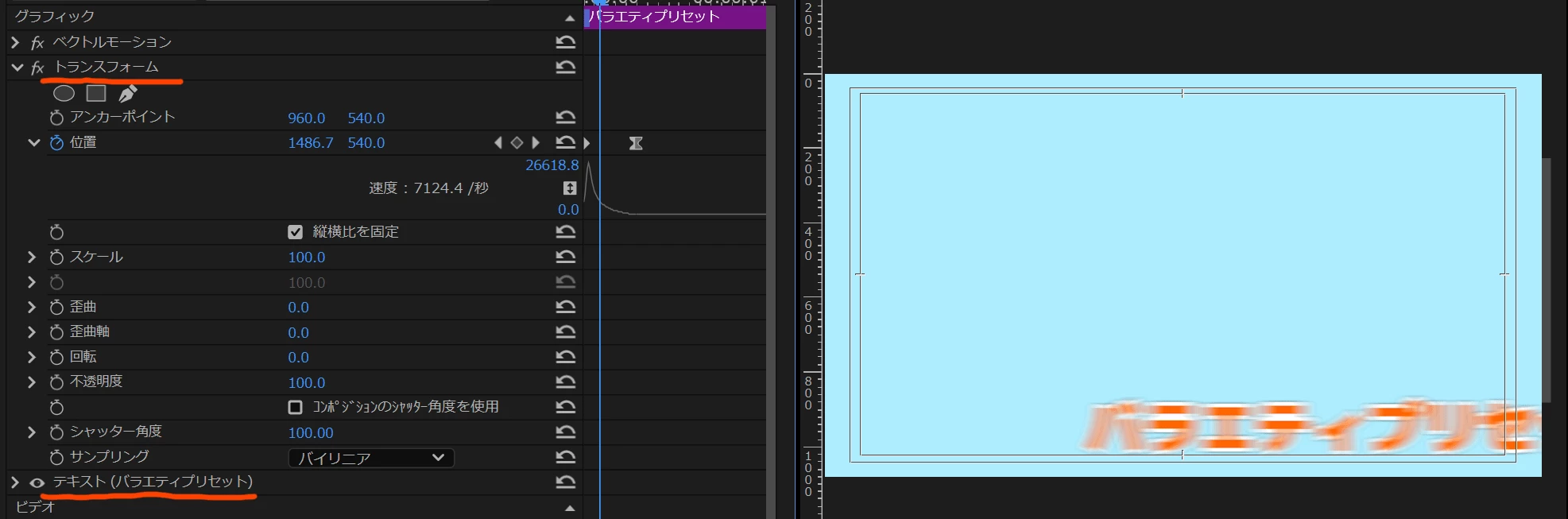 下記動画を参考に、テロップエフェクトを作成しています。