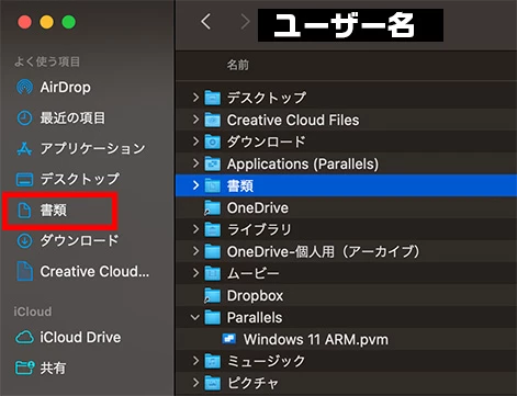 Macの「Documents」とは、「書類」フォルダーになるのですが無いでしょうか。