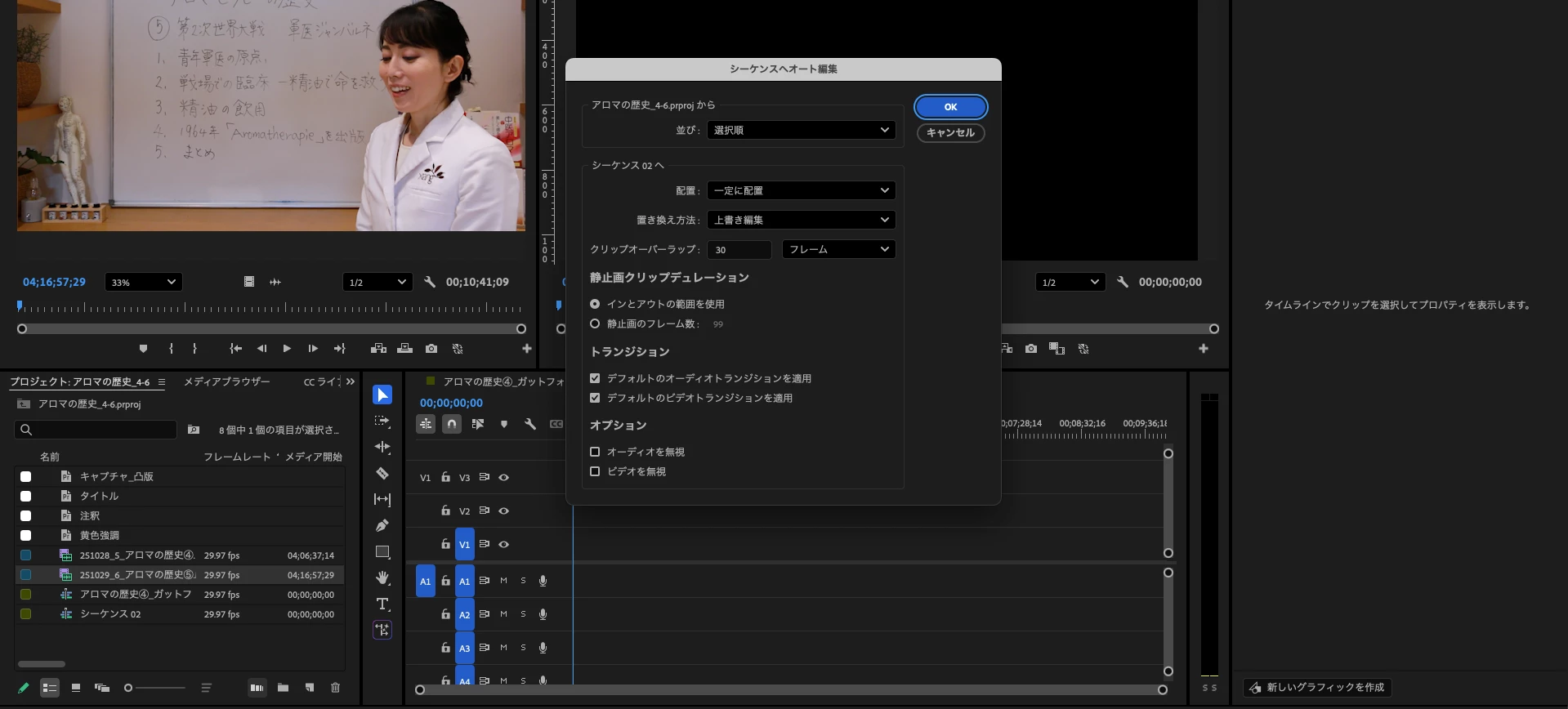 Bbellwood89ParticipantForum|Forum|2 months agoNovember 17, 2025Questionシーケンスに動画を挿入できない。Forum|Forum|2 months agoNovember 17, 20252 replies65 views新たにシーケンスを立ち上げ、そこへメディアブラウザから読み込んでプロジェクト内に入っている動画を選択して、添付の右側のタイムラインの方に動画を挿入して、動画を編集したいのですができません。改善方法をご教示いただきたいです。 なお、添付のようにプロジェクトの右下側のボタンにある、シーケンスへオート編集ってところを押すと、作成はできます。ただ、それならばどうして動画を選択して、ドラッグ&ドロップができないのか。謎です。 操作方法・手順