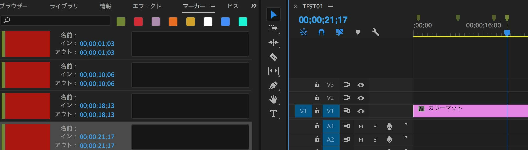 シーケンスに打ったマーカーがマーカーウィンドウに表示されない