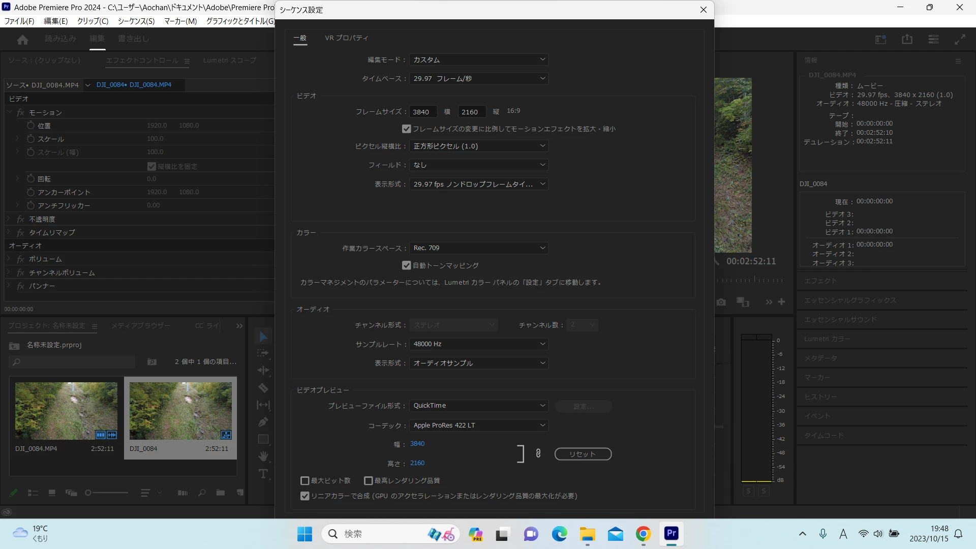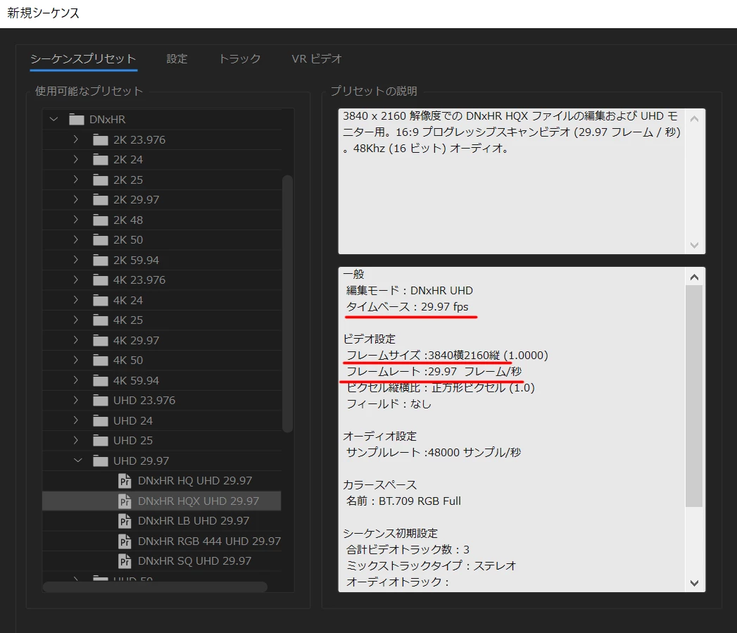 3840×2160のシーケンスになっていますので、特に問題は無いのではないかなと思います。