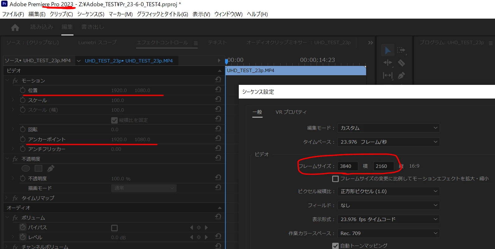>アッグレードする前は3840x1920のメディアをドロップした時にエフェクトコントロールの位置の数値とアンカーポイントの数値が3840x1920だったのですが、24.0では1920x1080になってしまいます
