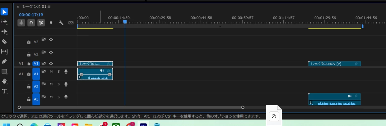 >シーケンス上のクリップを選択して移動させたいのですが、選択しても移動させることができません。