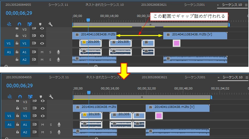 ギャップを含む範囲をまとめて選択した後、シーケンス→ギャップを詰めるをしてもギャップが削除されません