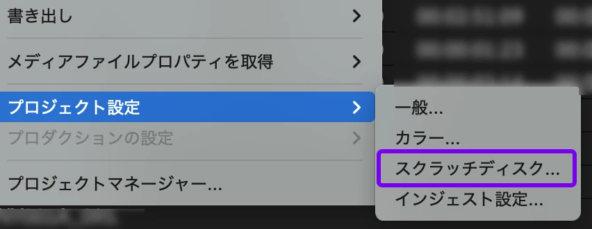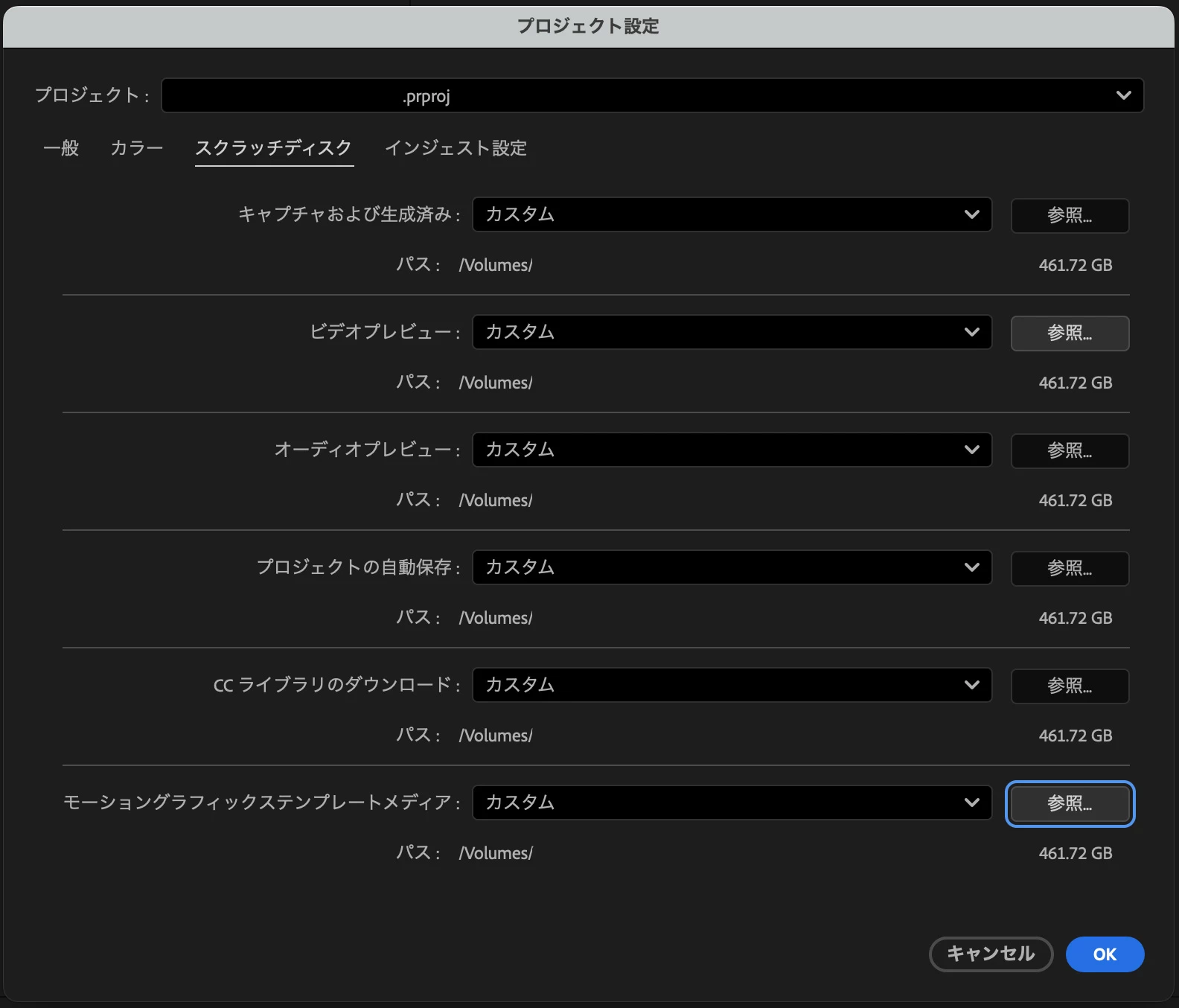 (スクラッチディスク = レンダリングファイルや過去に自動保存されたプロジェクトなどの一時ファイルを保存するフォルダのこと)
