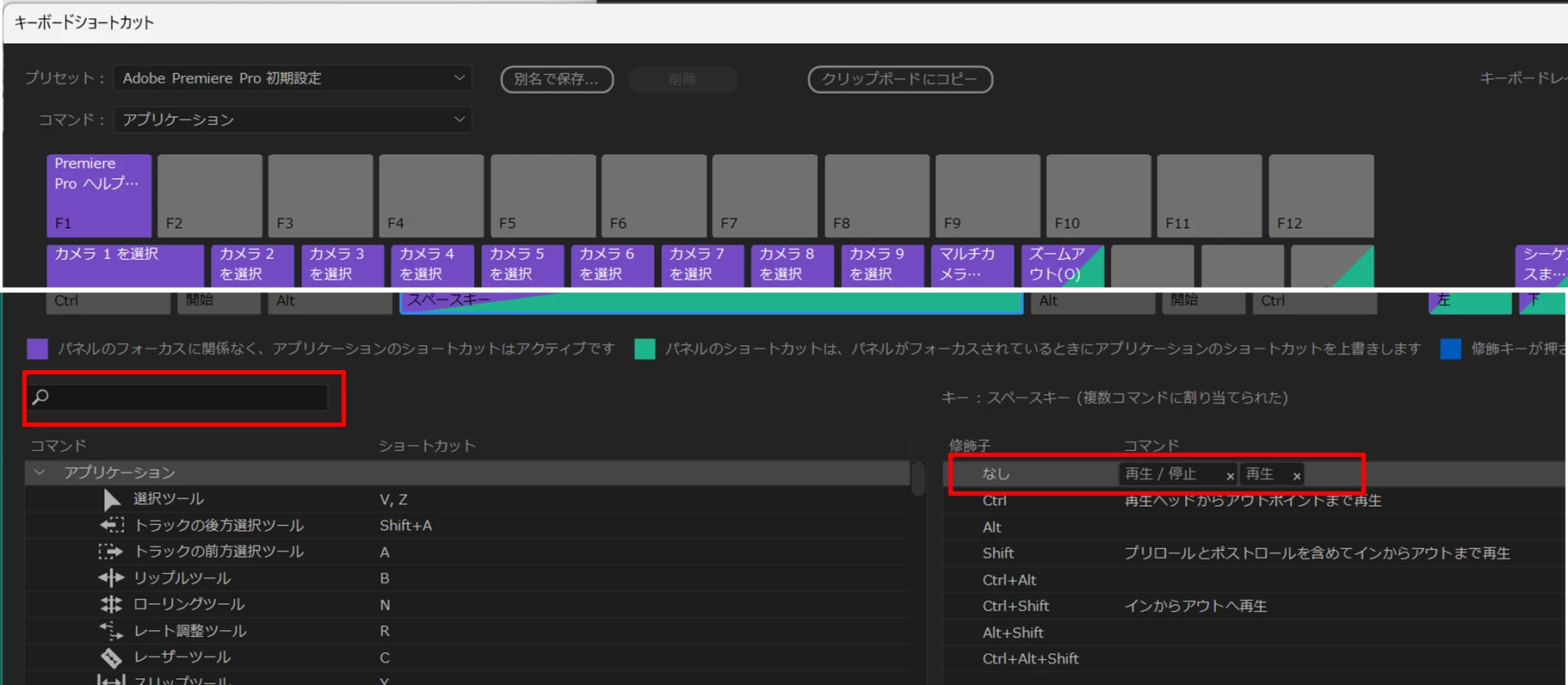 2、キーボード設定で他の文字キー(xやc)に再生/停止を割り当てると反応します(再生します)