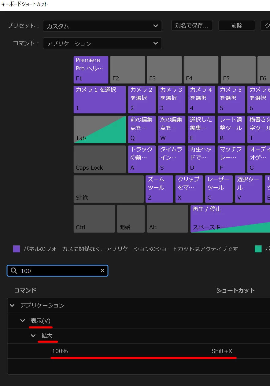 Premiere Pro側で何かするとしますと、使いやすきキーに「100%」(もし100%という意味が画面いっぱいという事でしたら「全体表示」)を割り当てていただいて、ショートカットで戻していただくのも一つの方法かと思います。