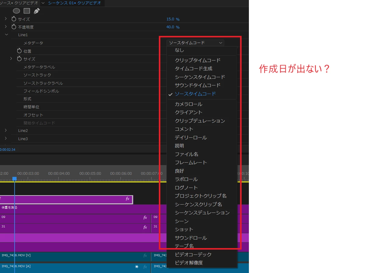 タイムコードに動画の作成日を出したい