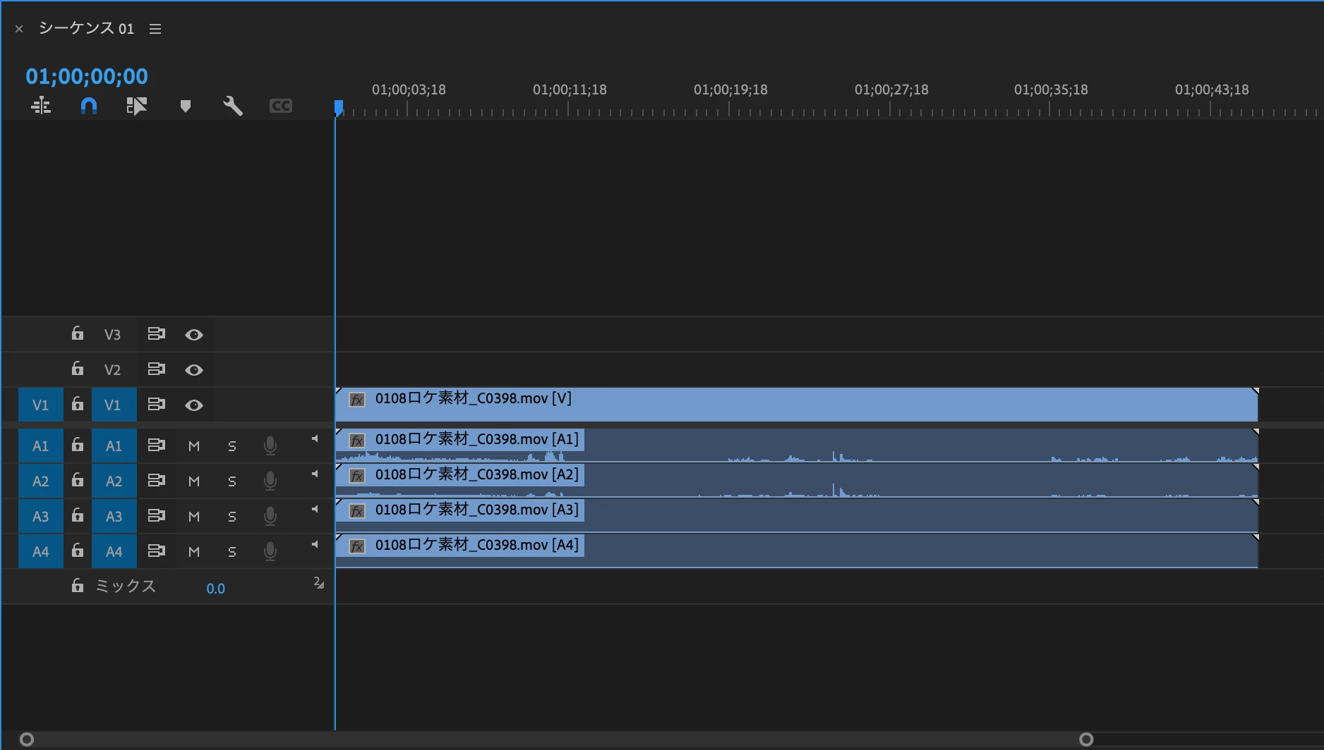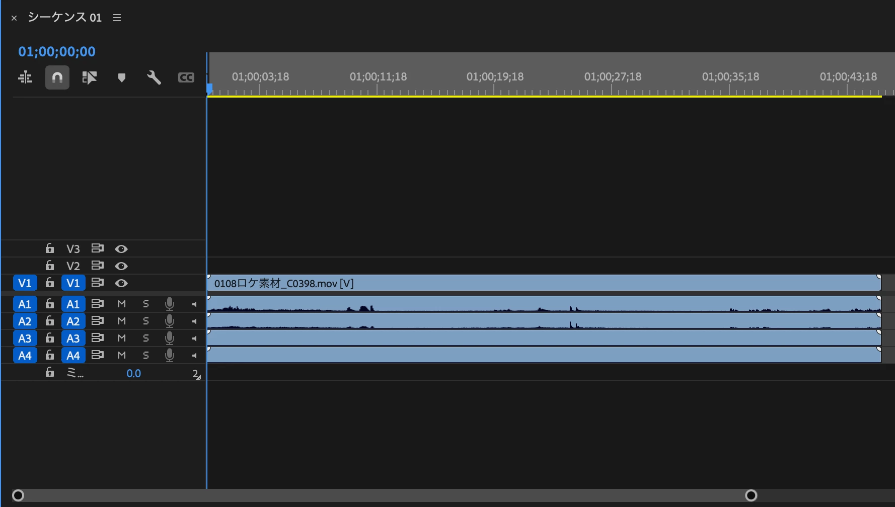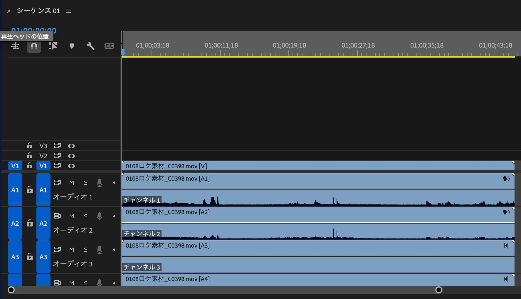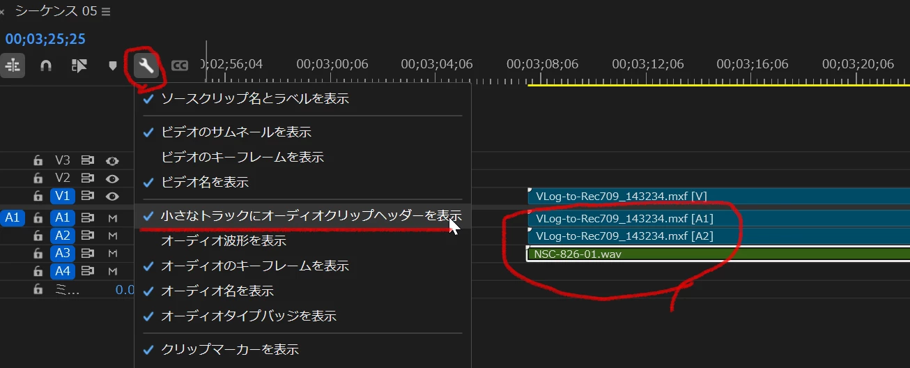 タイムラインでオーディオ名が表示されない