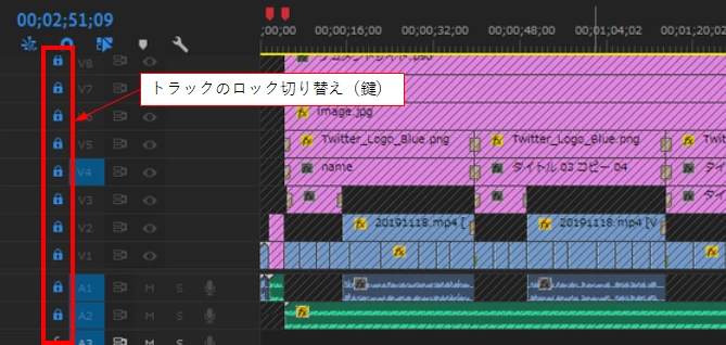 トラックの編集が終わった段階で、編集内容を変更できないように、このアイコンをオンにしてロックをかけておくと良いです。