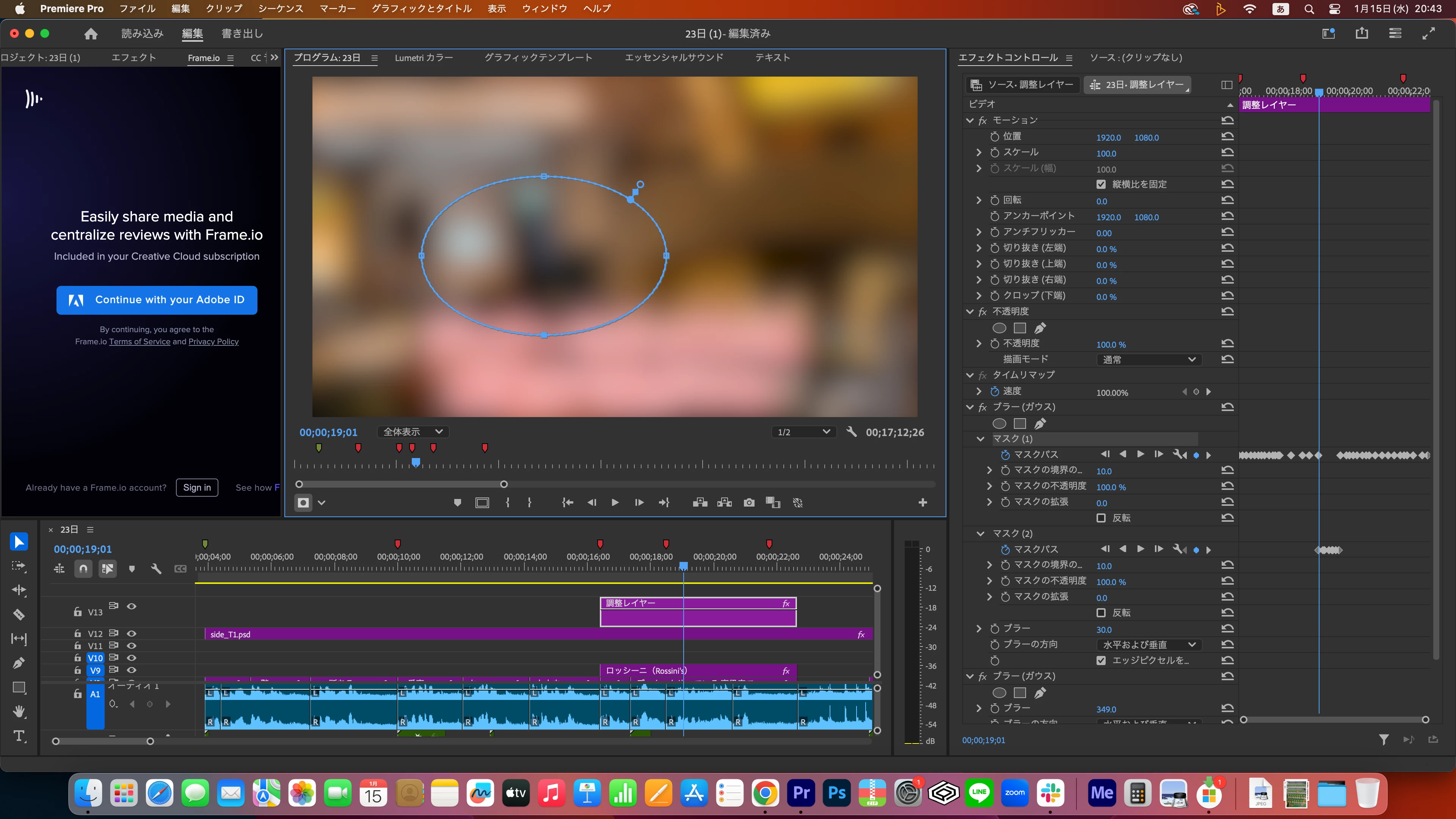 タイムラインを1fずつ動かしながらプログラムモニターのマスクを操作する方法