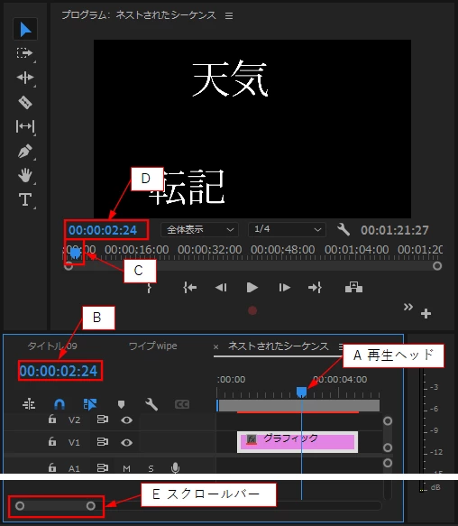 「再生ヘッド」上部の5角形の部分をドラッグしても再生ヘッドは動かないが、「C」は動くということですね。この時「B」と「D」の時間は変化しますか。