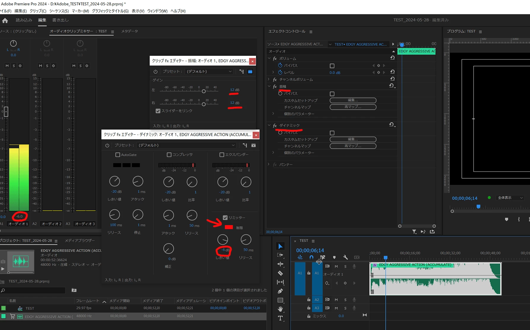 なぜ-6で止まってくれないのでしょうか?リミッターにチェックもちゃんと入っています。