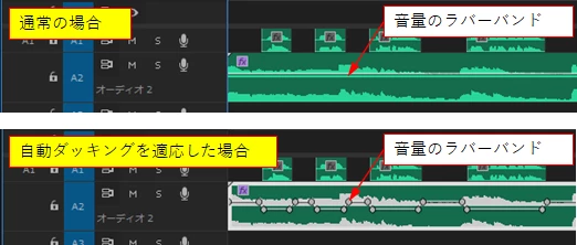 ダッキング機能は使用してないはずなんですが書き出した動画を見ると喋ってる所はBGMの音量が下がり、また音声が無くなるとBGMの音量が上がってるように聞こえます。