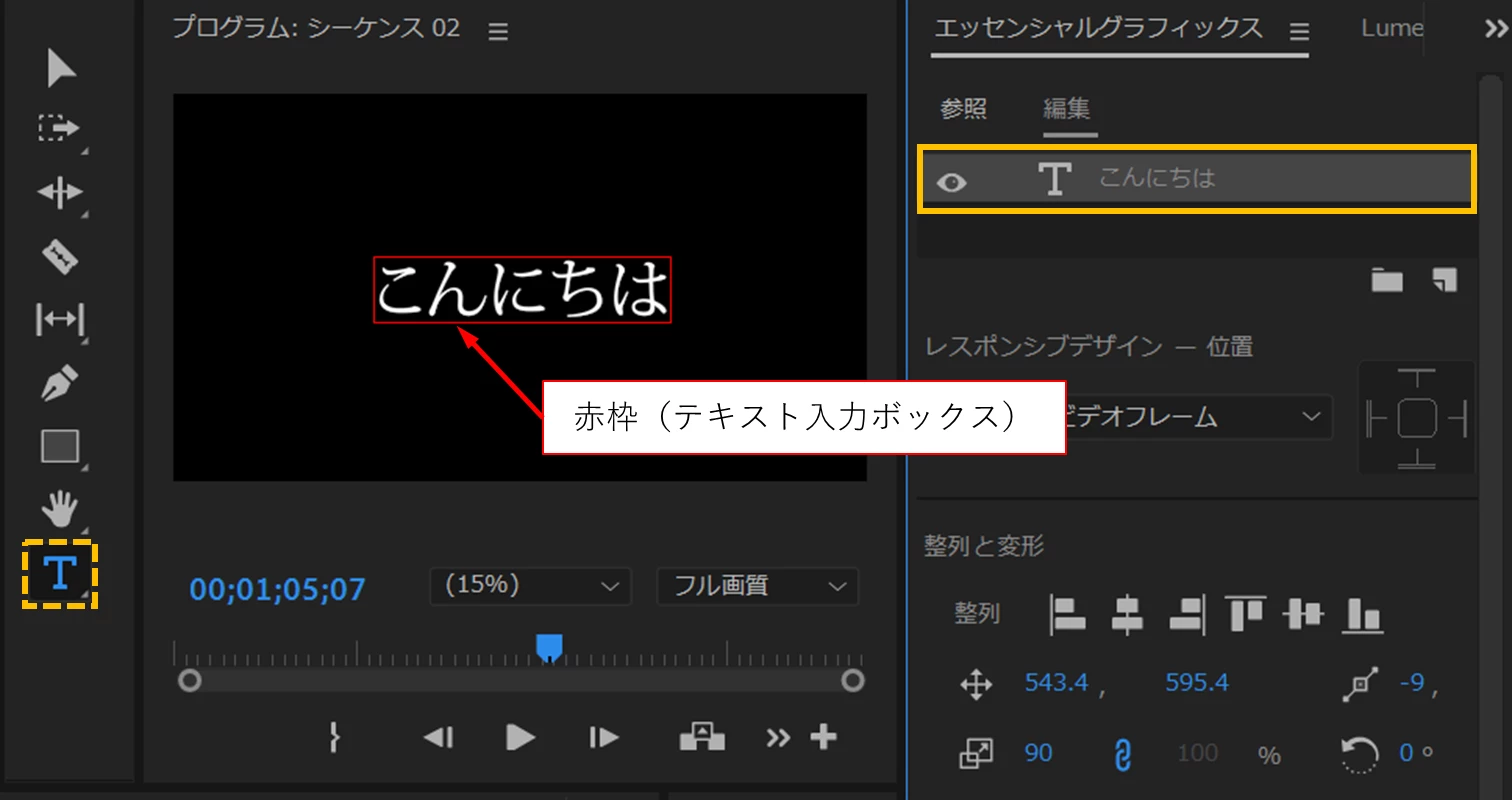 既に入力したテキスト(テロップ)を編集しようと、テキストを選択しようとするのですが赤枠がそのテキストには出ず、選択、編集できません。