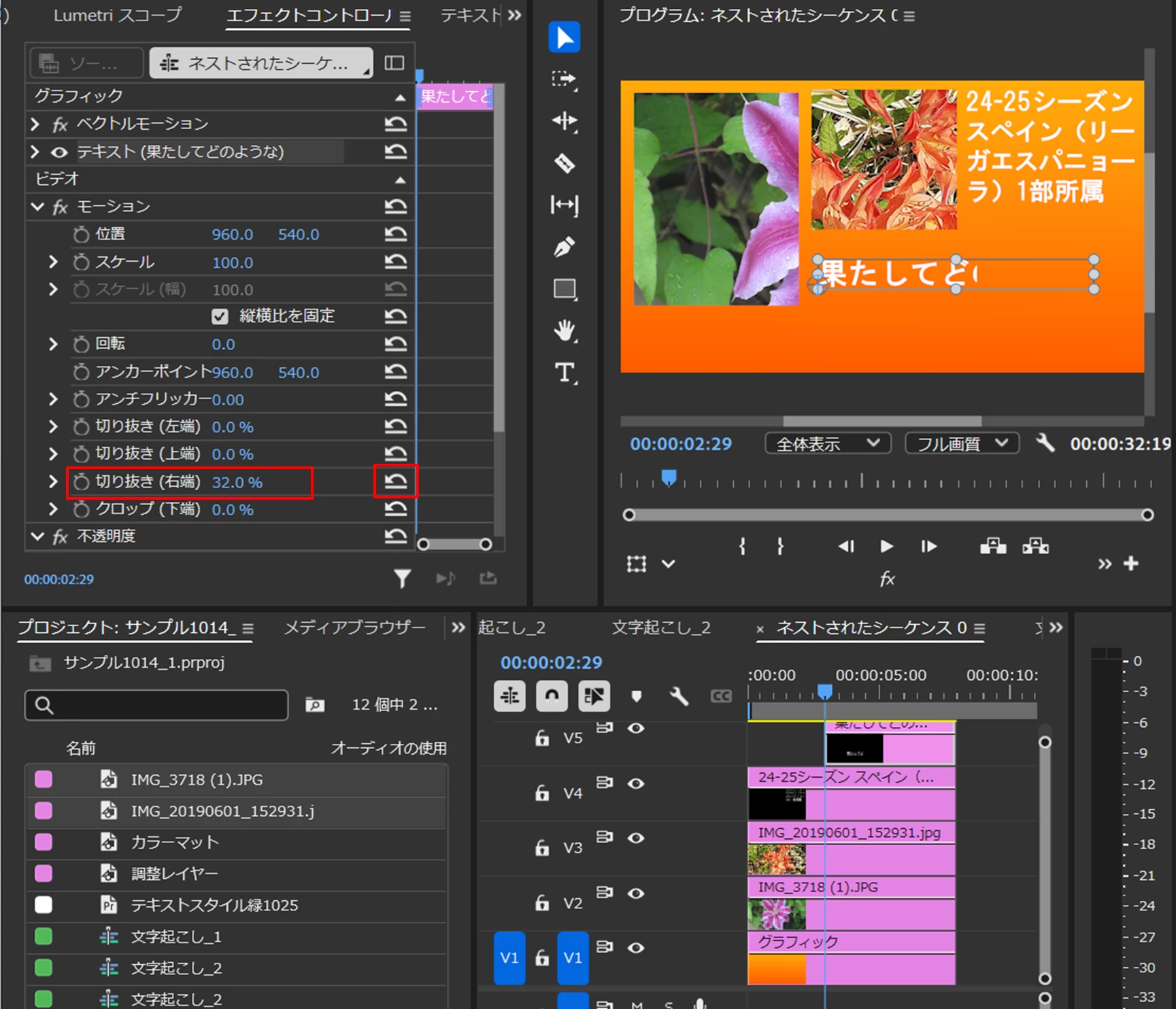 *「モーション」の「切り欠き(・・)」はPremiere Pro v25.0で追加になった機能です。