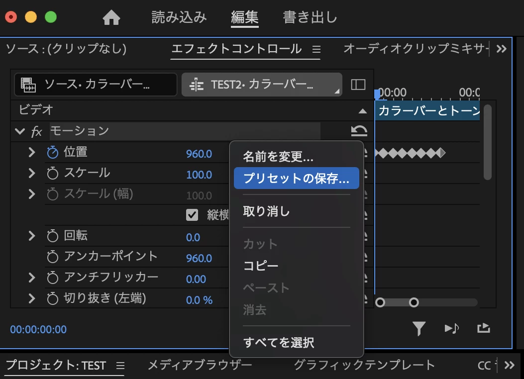 一度キーフレームを打ったものを「プリセットを保存」機能で保存しておくことで、次回以降容易に使うことができます。