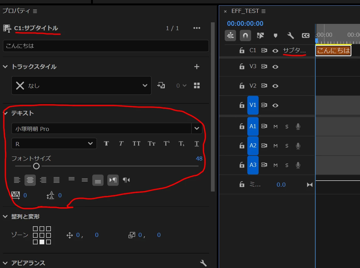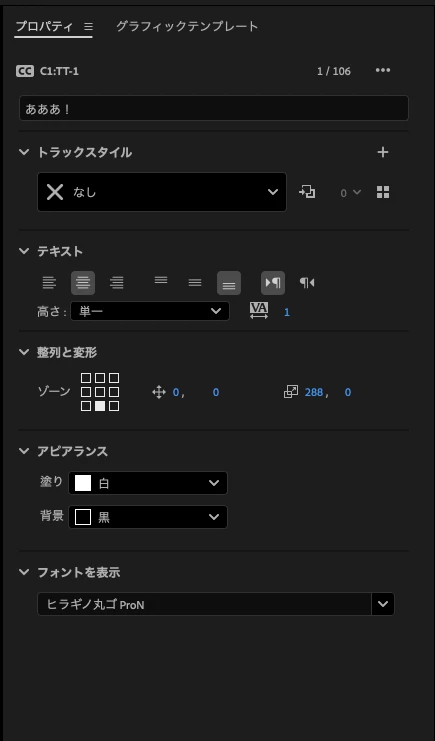 現在、カット→キャプションで自動テロップ作成→誤字・タイミング修正まで終わり、テロップのサイズやフォントの編集に取り掛かろうとしたところで止まっています。