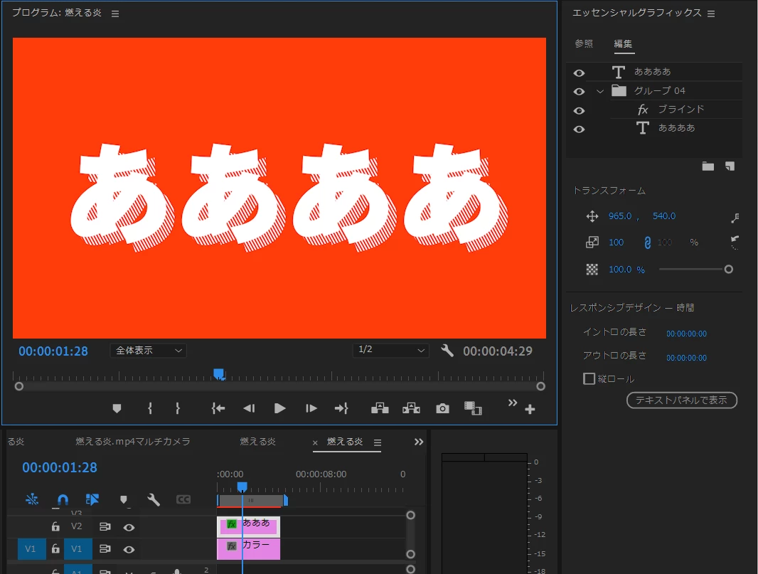 また、Premiere Pro v24.5で任意の映像クリップにブラインドエフェクトを適用したプロジェクトをv25.xの本編プロジェクトに読み込んでブラインドエフェクトを適用することもできます。