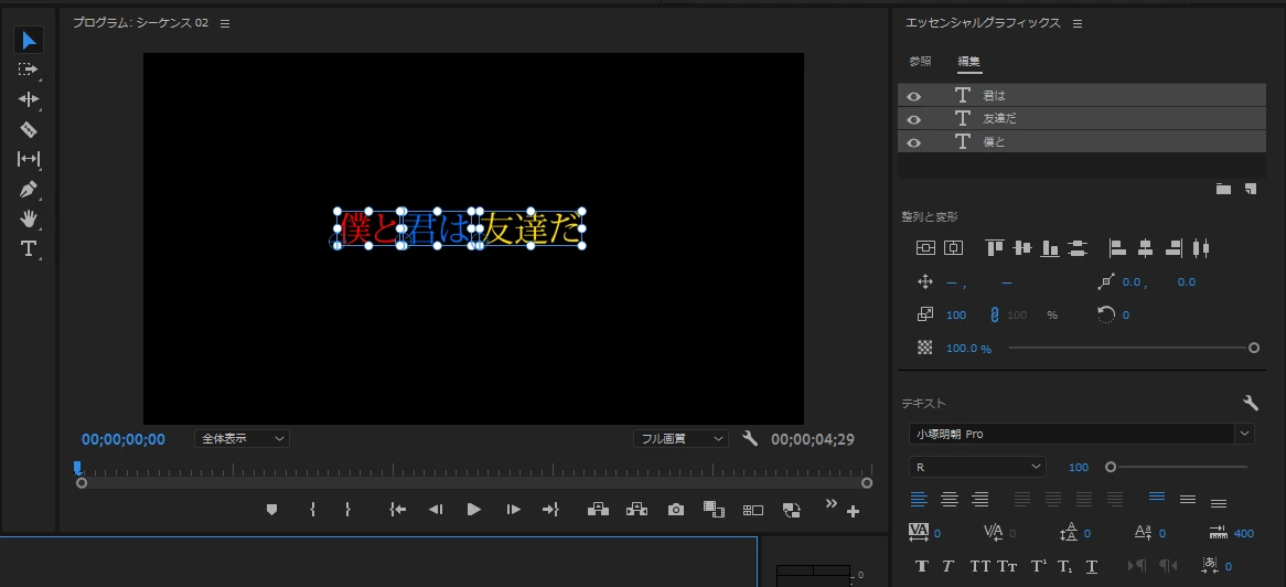 「僕と君は友達だ」というテキスト(僕は赤色、君は青色、友達は黄色とする)があるとします。