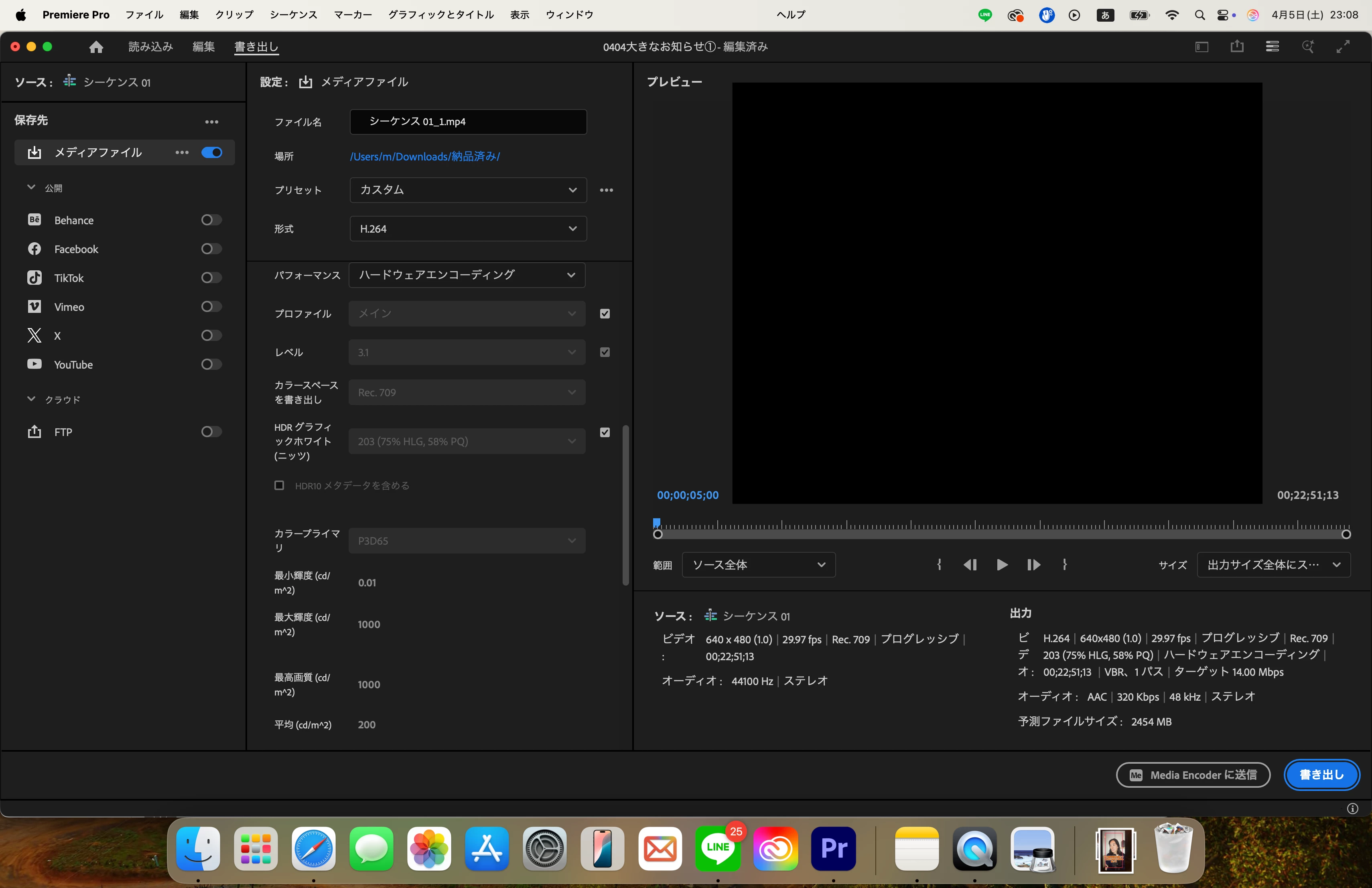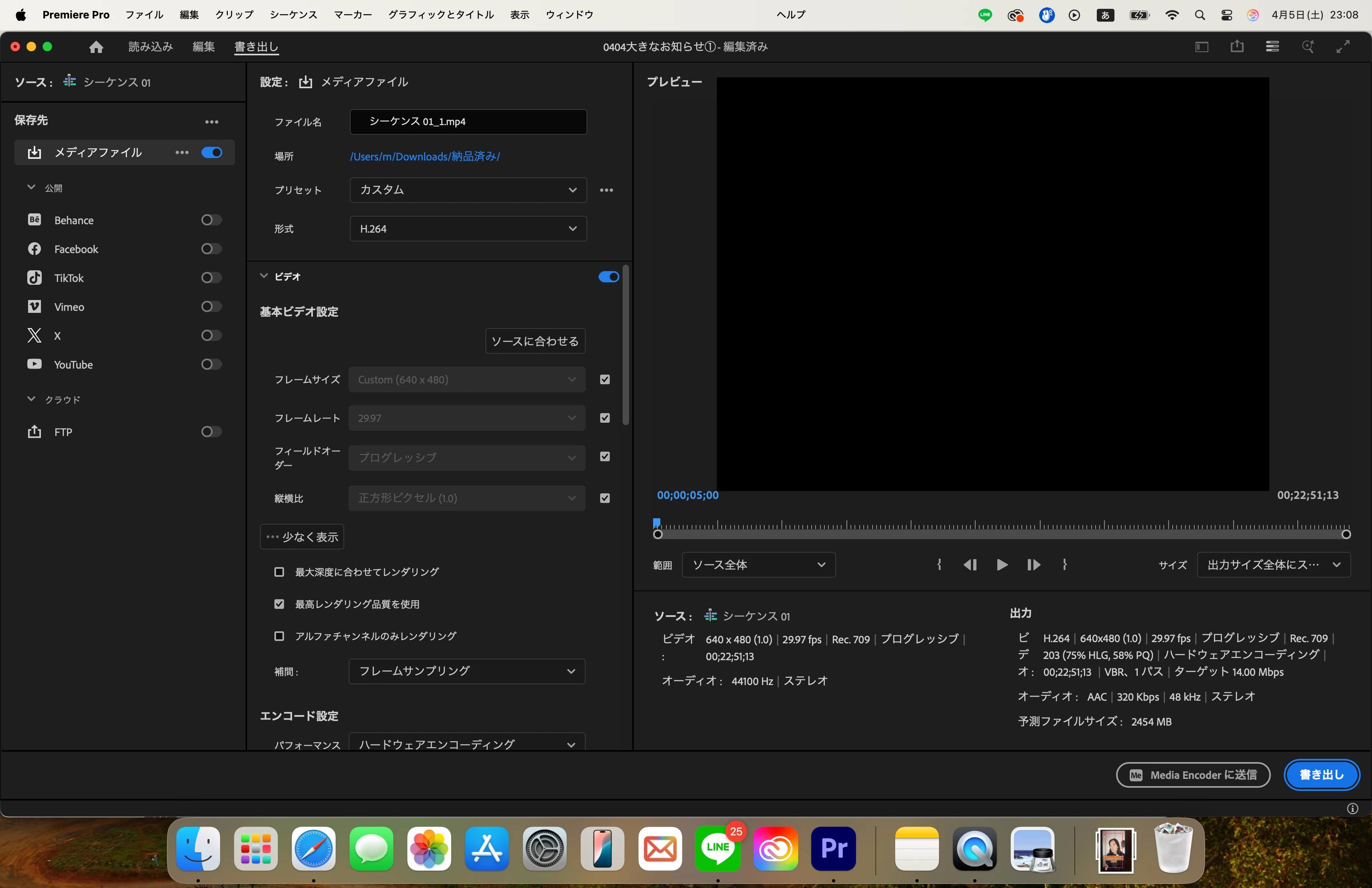 こちらについては、撮影時のスマホの設定を確認しないとなんとも言えないところですが、縦長で撮影されているのでしたら640×480にはならないと思いますので、どちらかと申しますとシーケンス設定の問題である可能性が高いと思います。