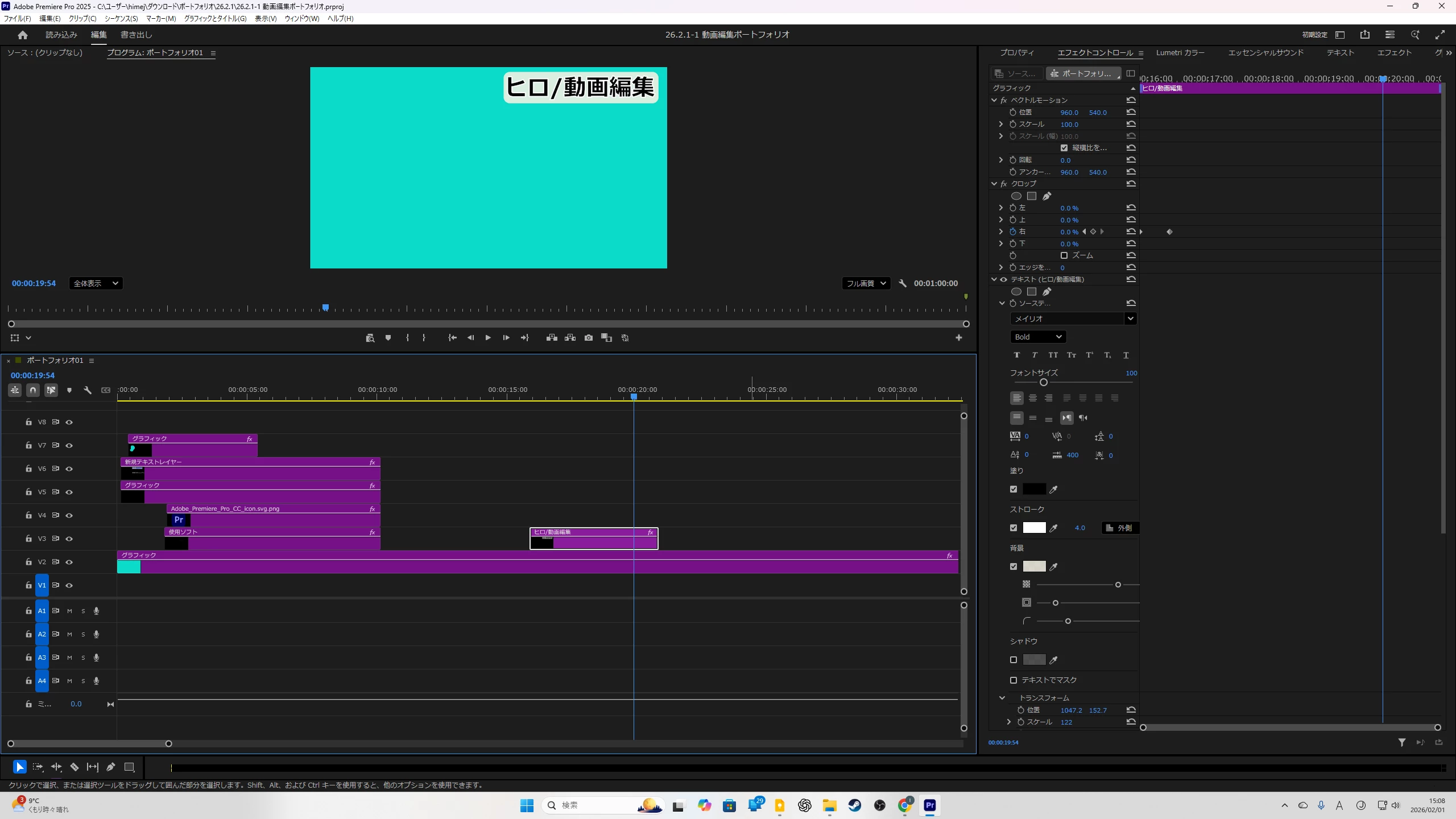 テキストを横からスライド表示させるスピードをキーフレームの間隔を広げて調整する方法