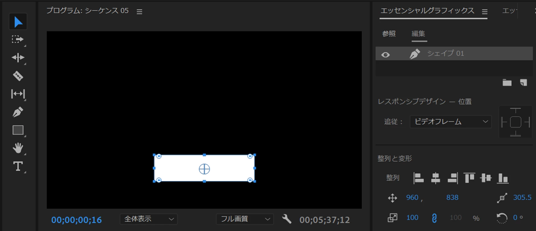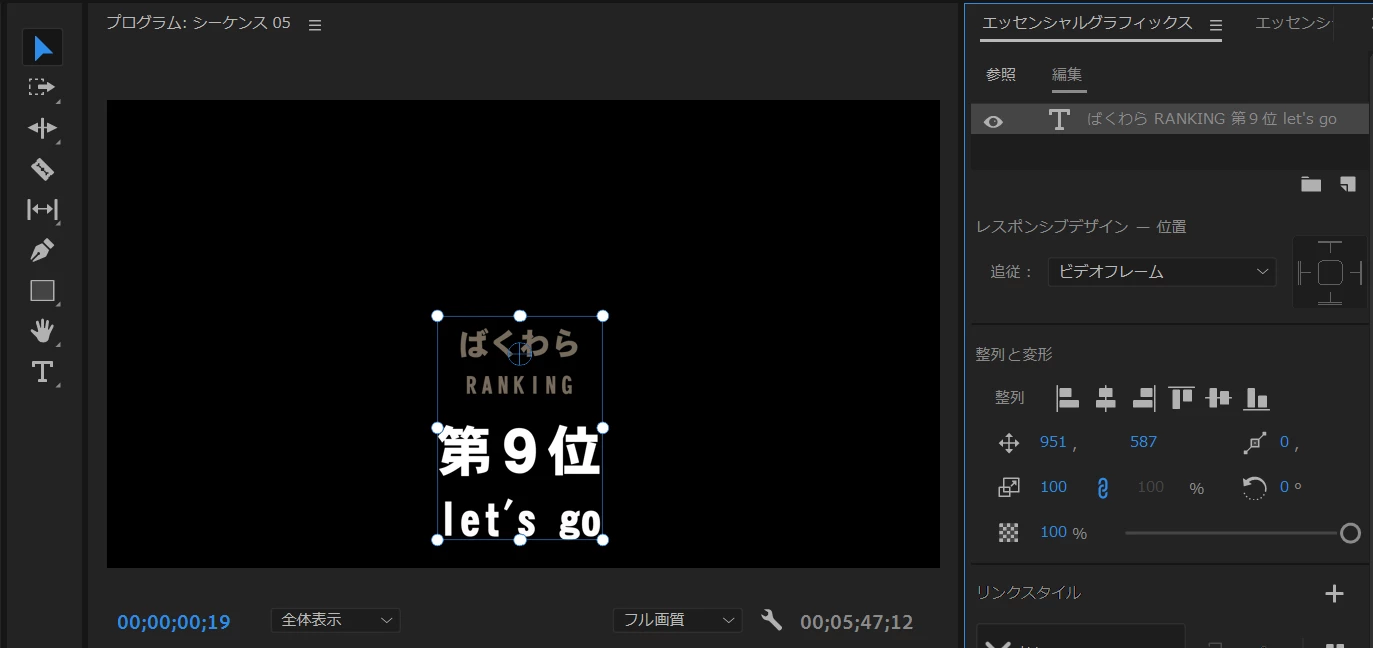 このテンプレートをビデオトラックにドラッグ&ドロップすれば使用できるようになります。編集もできます。ただし、「参照」タブの「モーショングラフィックステンプレート」は変更されずに残っています。
