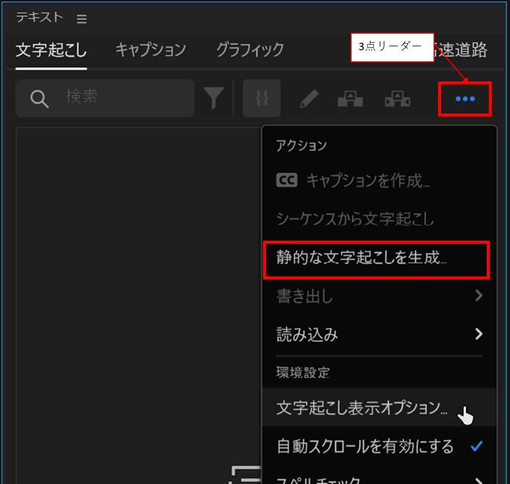 プレミアプロのテキストウィンドウの字幕メニューにて、字幕を編集したいのですが、