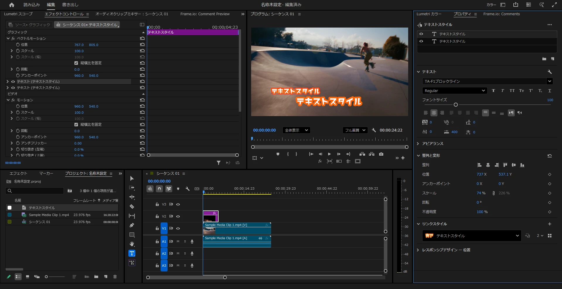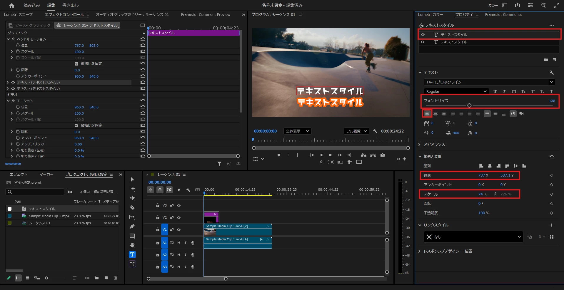 まずテキストスタイルを作るためにサンプルとなるテキストを作成しました。