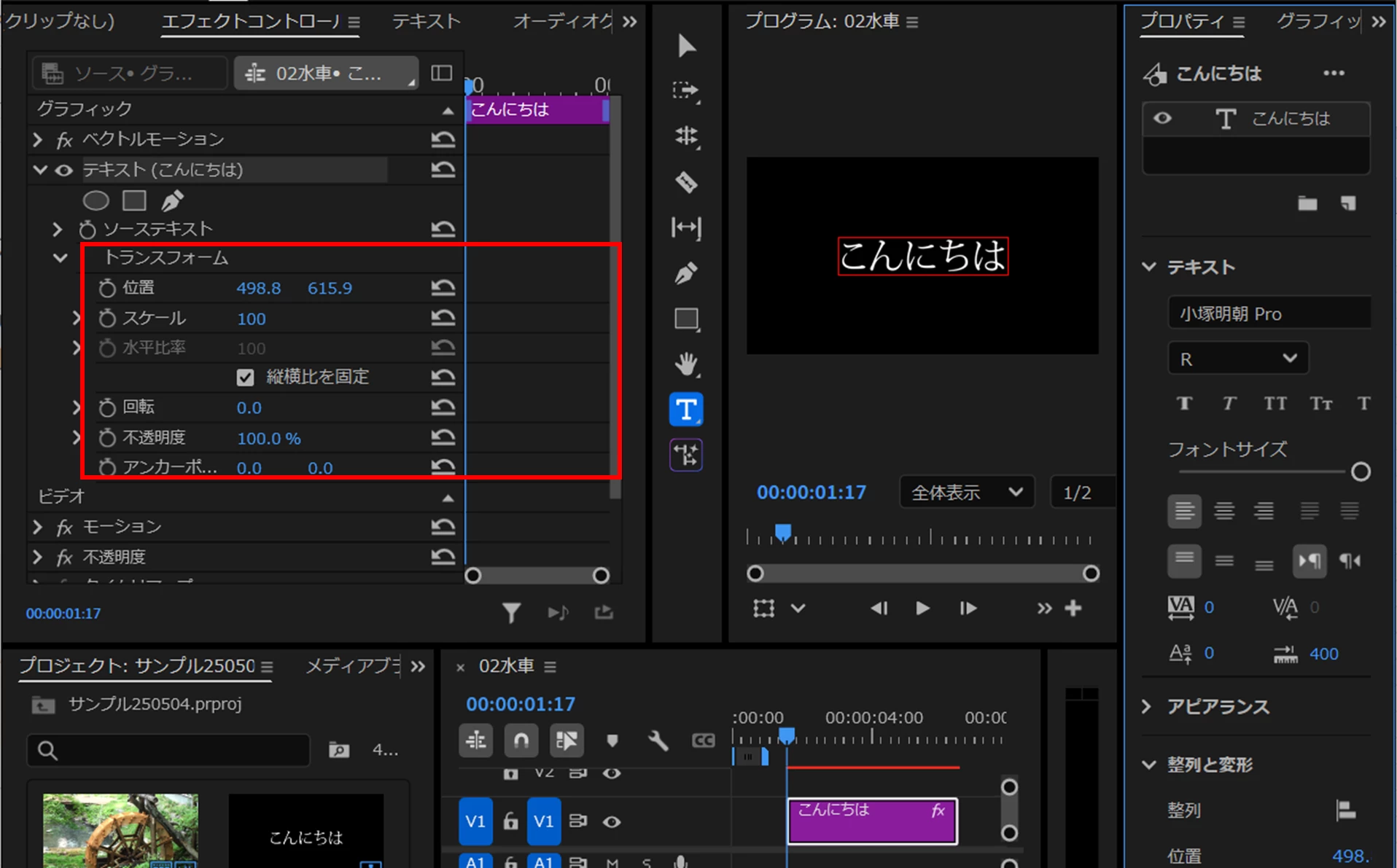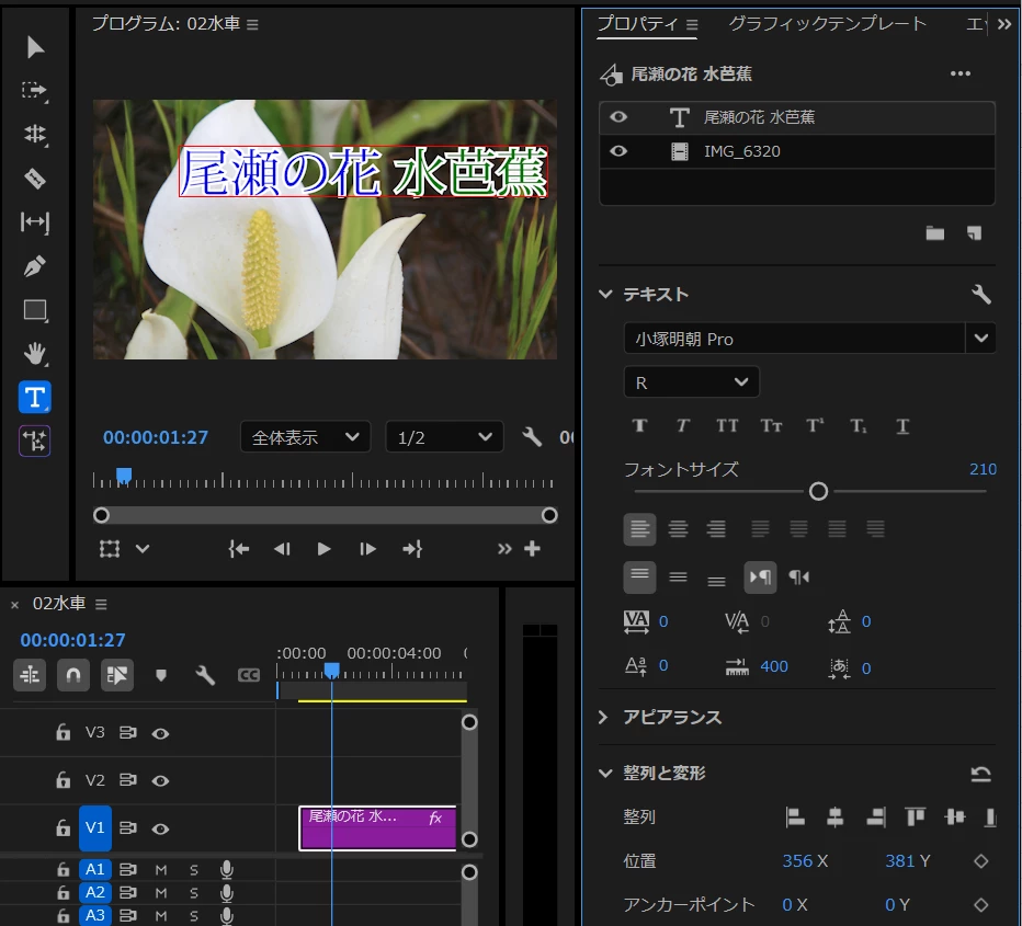 テキストに動きをつけたエフェクトを使用した際、位置がいつもと違うとアンカーポイントの場所もズレ動きが変になってしまいます。