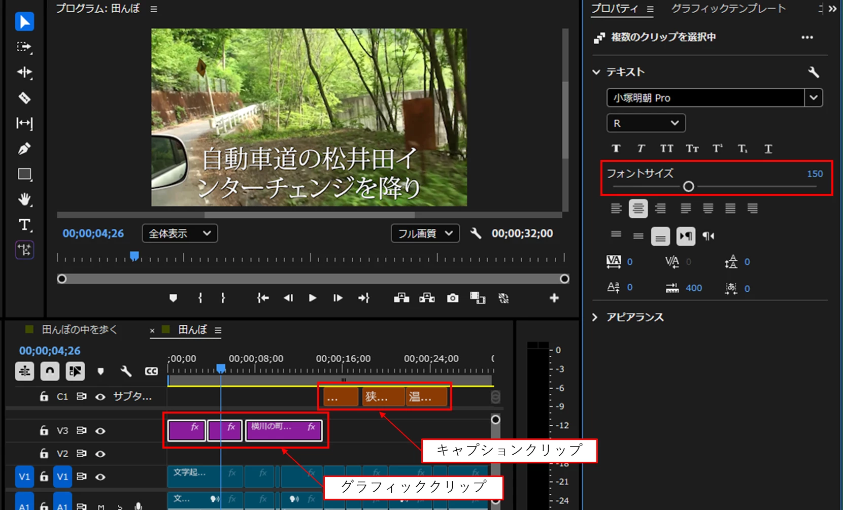 リンクスタイルにテキストスタイルを保存して、全クリップに反映させるとそのテキストが大きくなります。