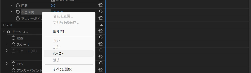 しかし、ペーストをしてもキーフレームは追加されません。