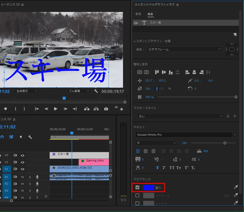 テロップ入力は、Adobe公式の初心者向けビデオを見て以下のとおり行っていました。