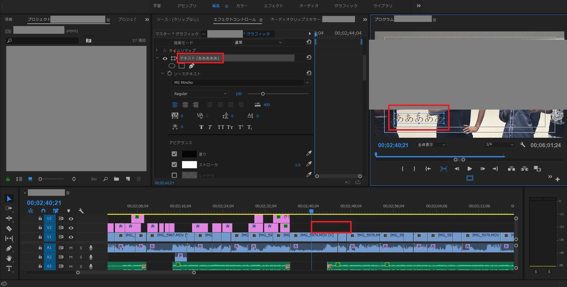 ②グラフィッククリップが「V4」トラックに隠れていませんか。