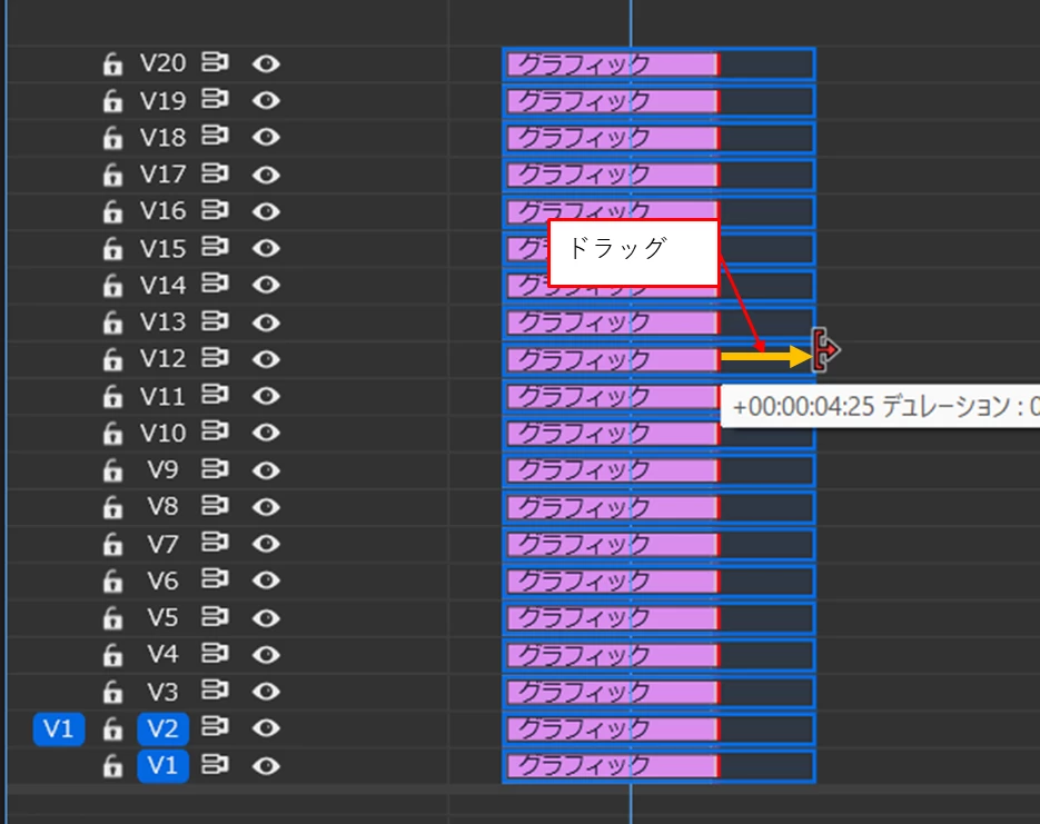 ①すべてのクリップを選択し、