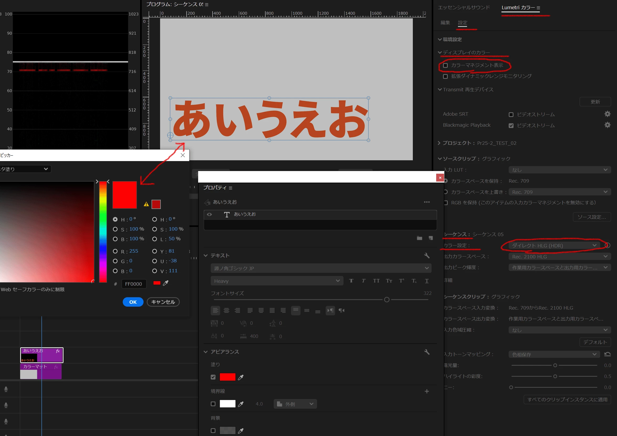 プレミアプロのアプデが入ってから、HDR動画上の白文字のテロップに灰色がかる現象に、悩まされています。書き出しプレビューでは無く、編集画面上でも同じことが起こります。
