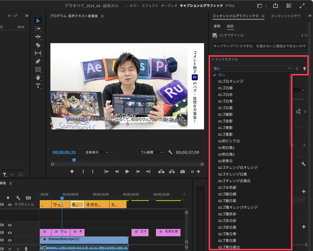 エッセンシャルグラフィックスパネルの「トラックスタイル」という項目で