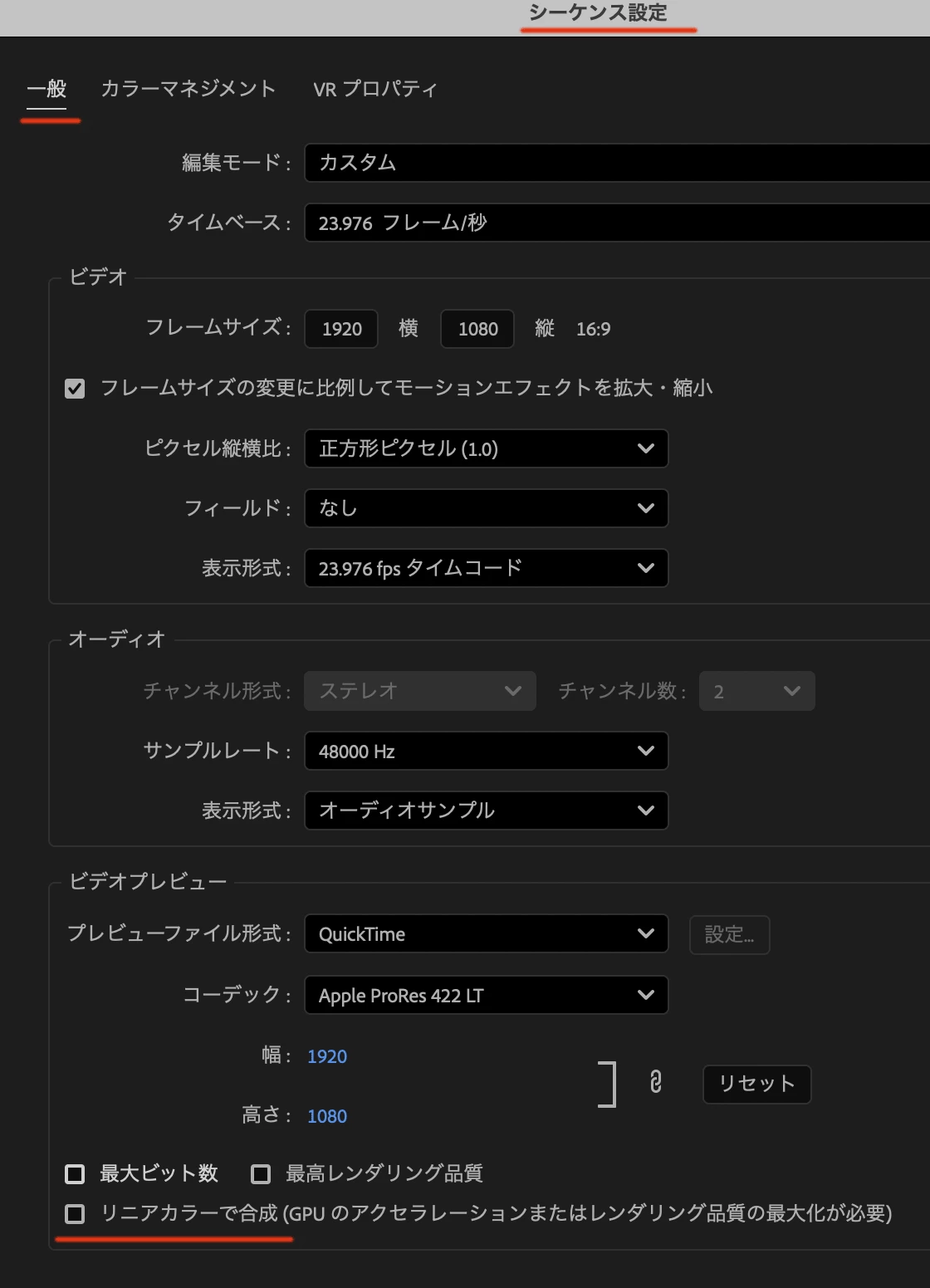 ・シーケンスのカラー設定を確認しましたが、同じでした。