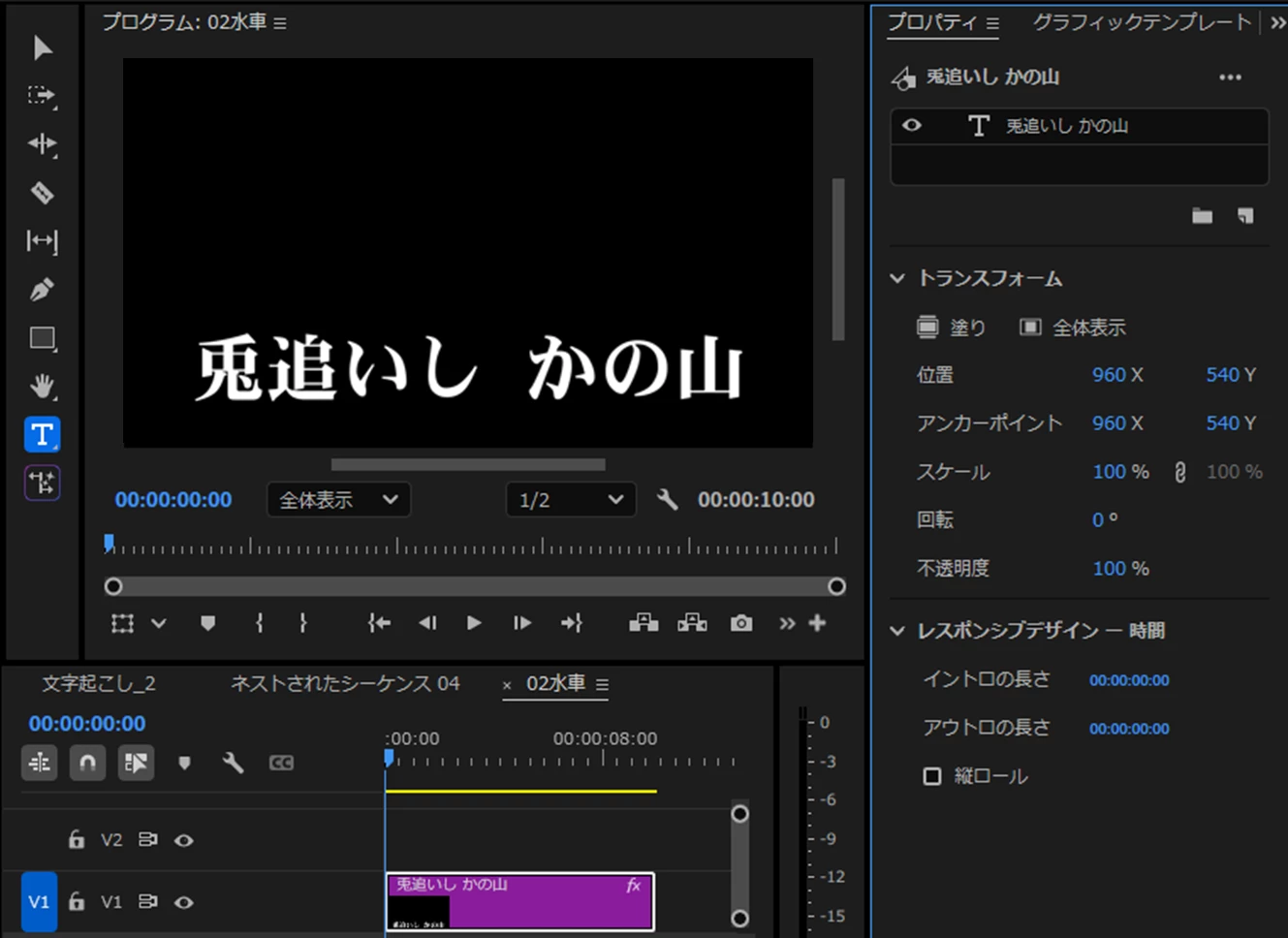 テロップへのトランジションの適用範囲について